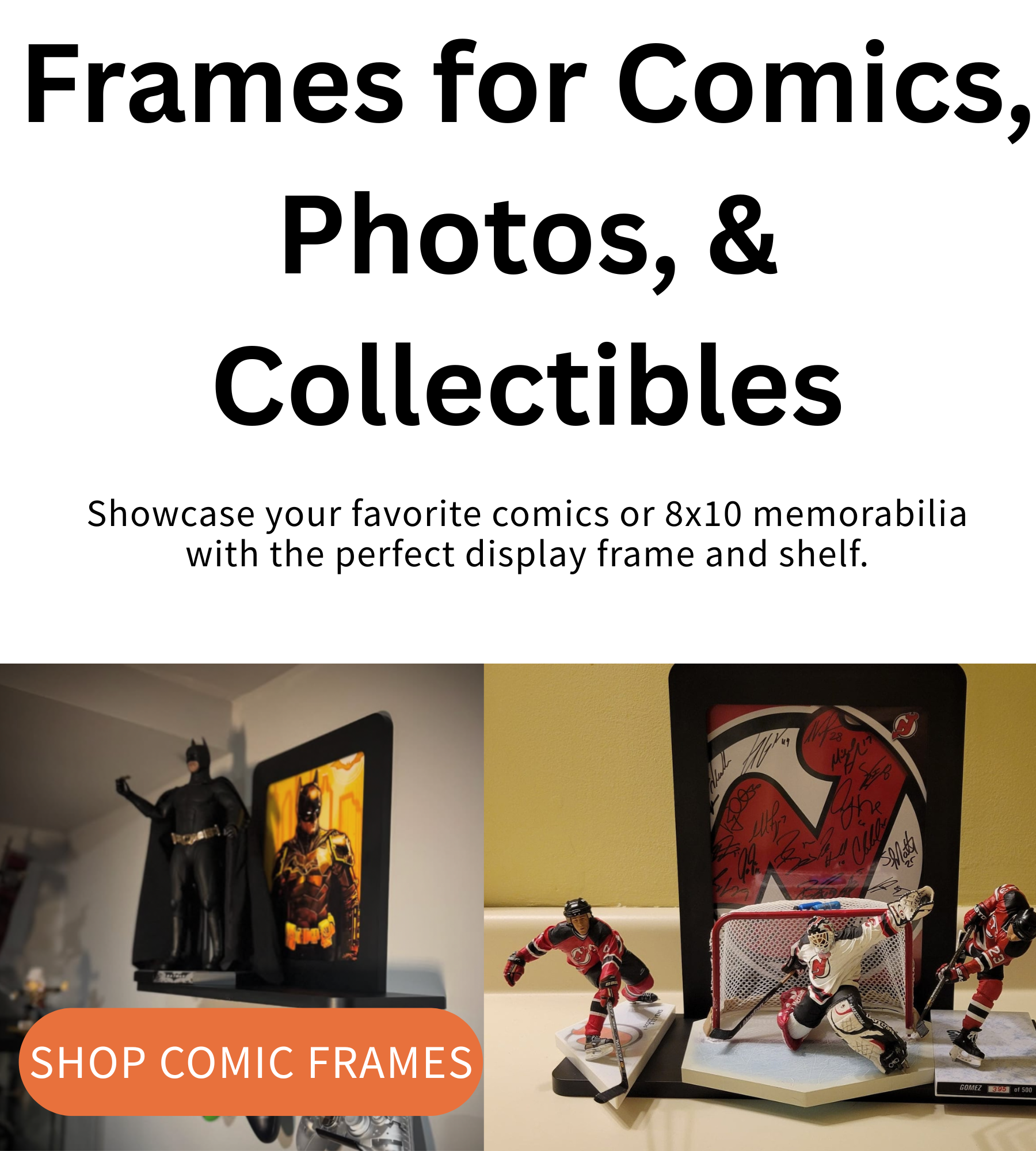 Give your collection the display it deserves with The Nerd Shelf—a premium frame-and-shelf unit designed for collectors who want to highlight their most treasured pieces with style and sophistication. Whether you’re showcasing rare comics, 8x10 prints, magazines, or memorabilia, The Nerd Shelf is the ideal solution to turn your space into a true showpiece.