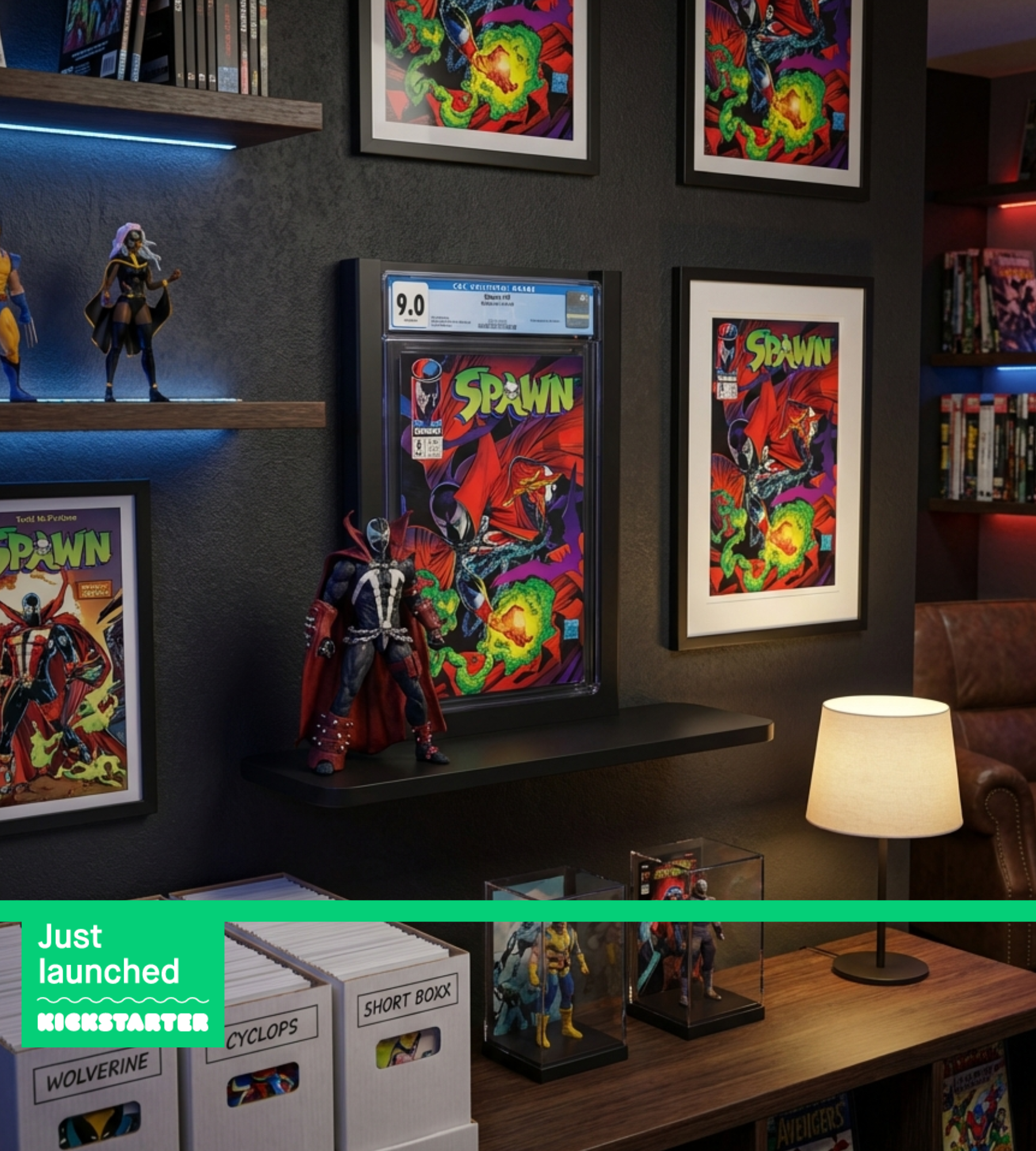 The Nerd Shelf is not specifically designed for protection. It’s created to showcase your collections in a stylish and visually appealing way. While it can securely hold your items and provide a stable display, its primary function is to highlight your collectibles, comics, and memorabilia, turning them into beautiful focal points in your space. Ensuring that the media and collectibles are protected before using The Nerd Shelf is suggested. In fact, it was designed to hold comics, 8x10 and magazines that were already in a plastic bag with a backing.
