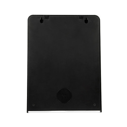 - Back secured with two screws and a locking tab.